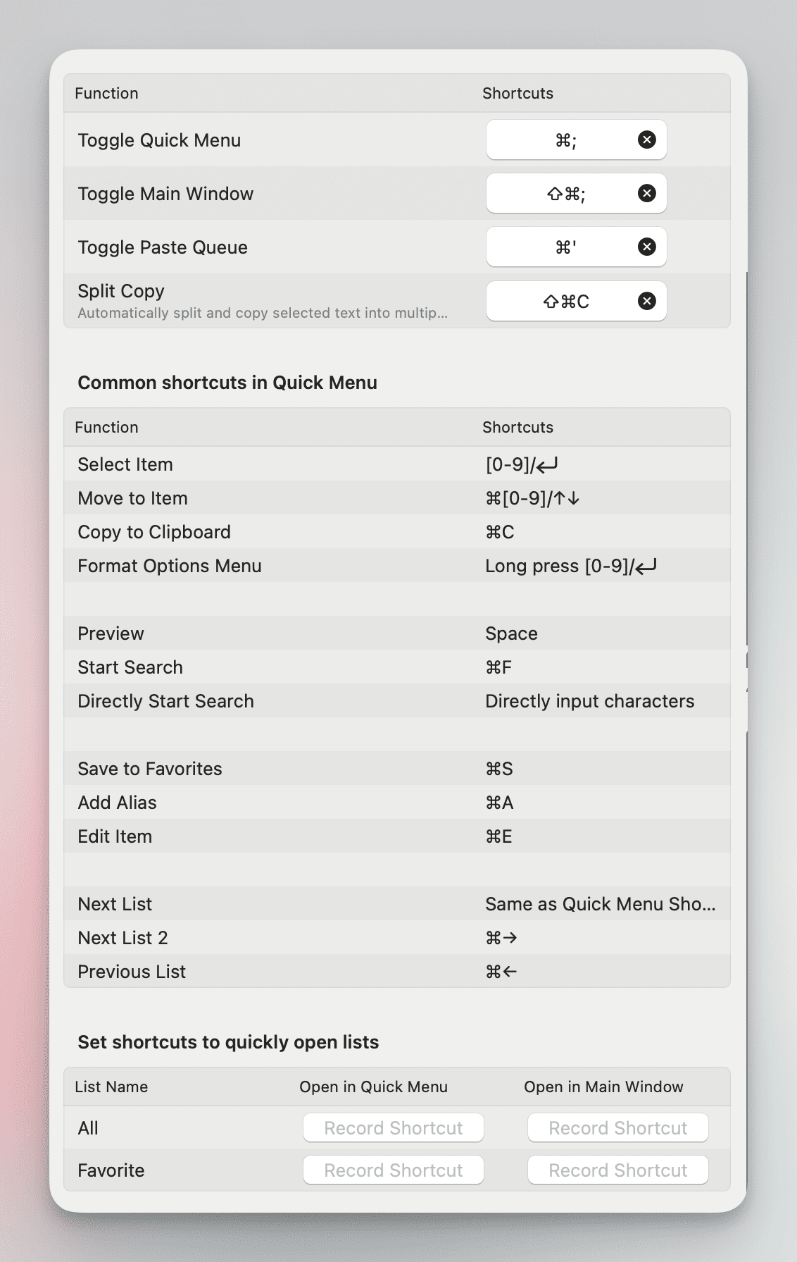 CleanClipはMacユーザーにとって探求する価値のあるいくつかのクリップボードショートカットを提供しています: