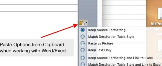Microsoftは、クリップボードの内容を別のアプリケーション(例えばWord)にペーストする際に追加のオプション層を加えています。